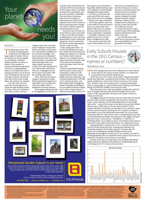 Submissions deadline for issue 152 is 1st November 2022 • Suburb News Co-Editors are Marie-Christine OʼCallaghan & Shelley-Anne Salisbury • suburbnews@hgsra.uk